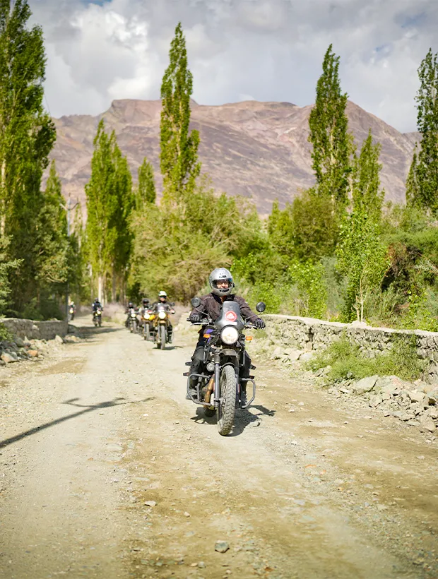 Our itineraries are tailored with the rider's experience in mind, offering maximum excitement without overwhelming fatigue. This 12-day adventure includes visits to the picturesque Aryan villages of Dah and Hanu—hidden gems rarely open to tourists—alongside the stunning landscapes of Ladakh